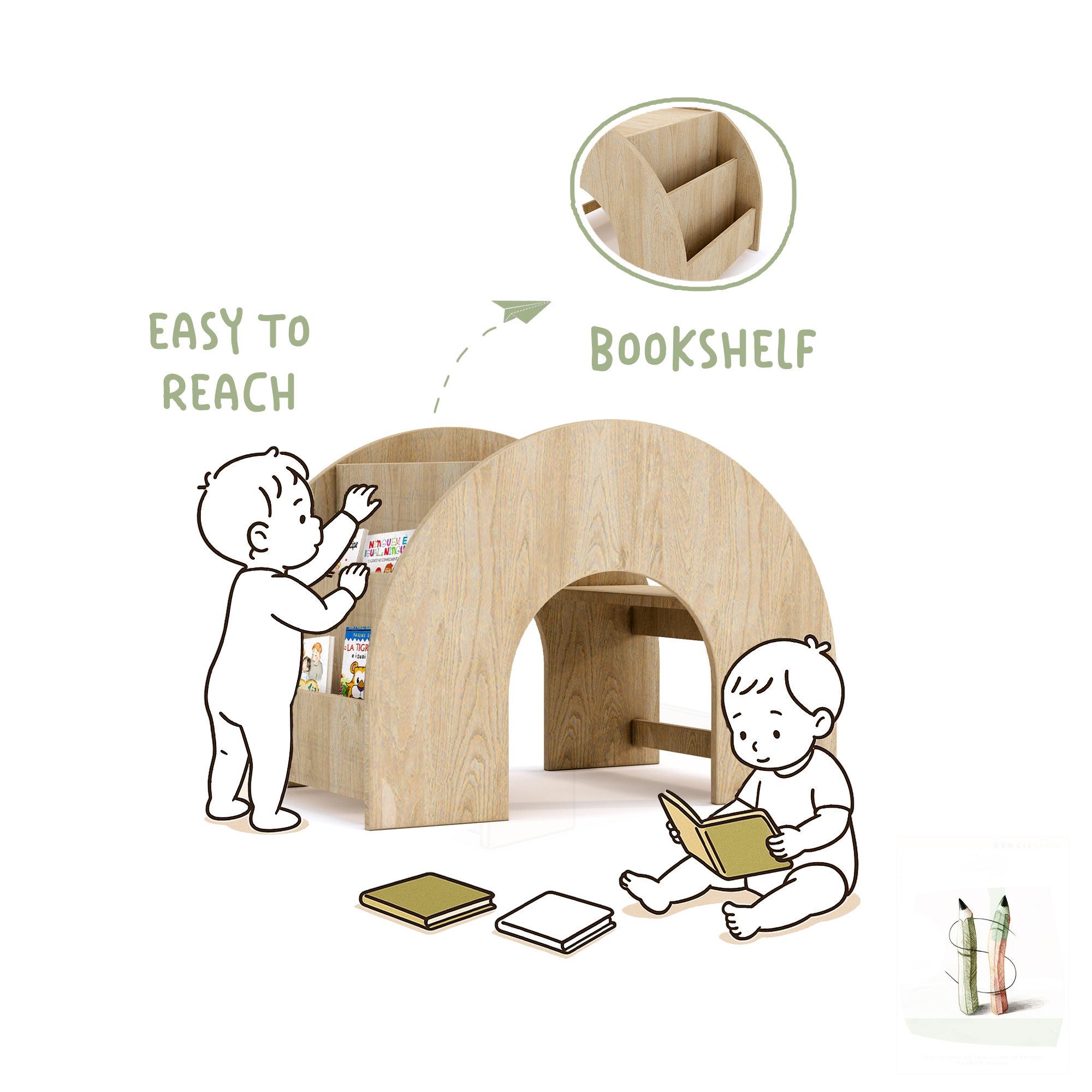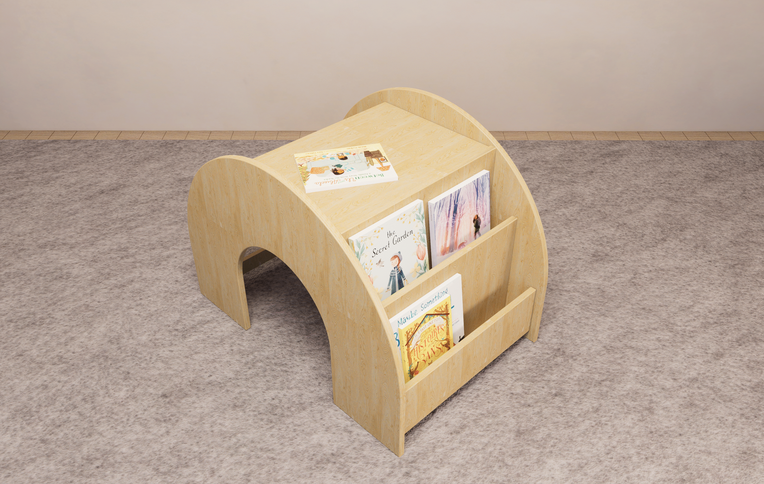 - Acts as a front faced Montessori bookshelf