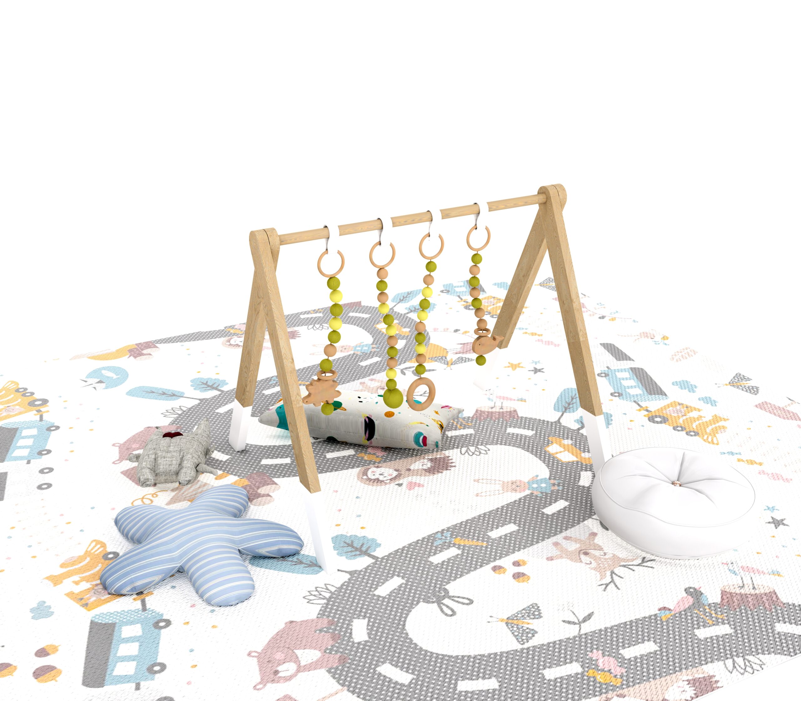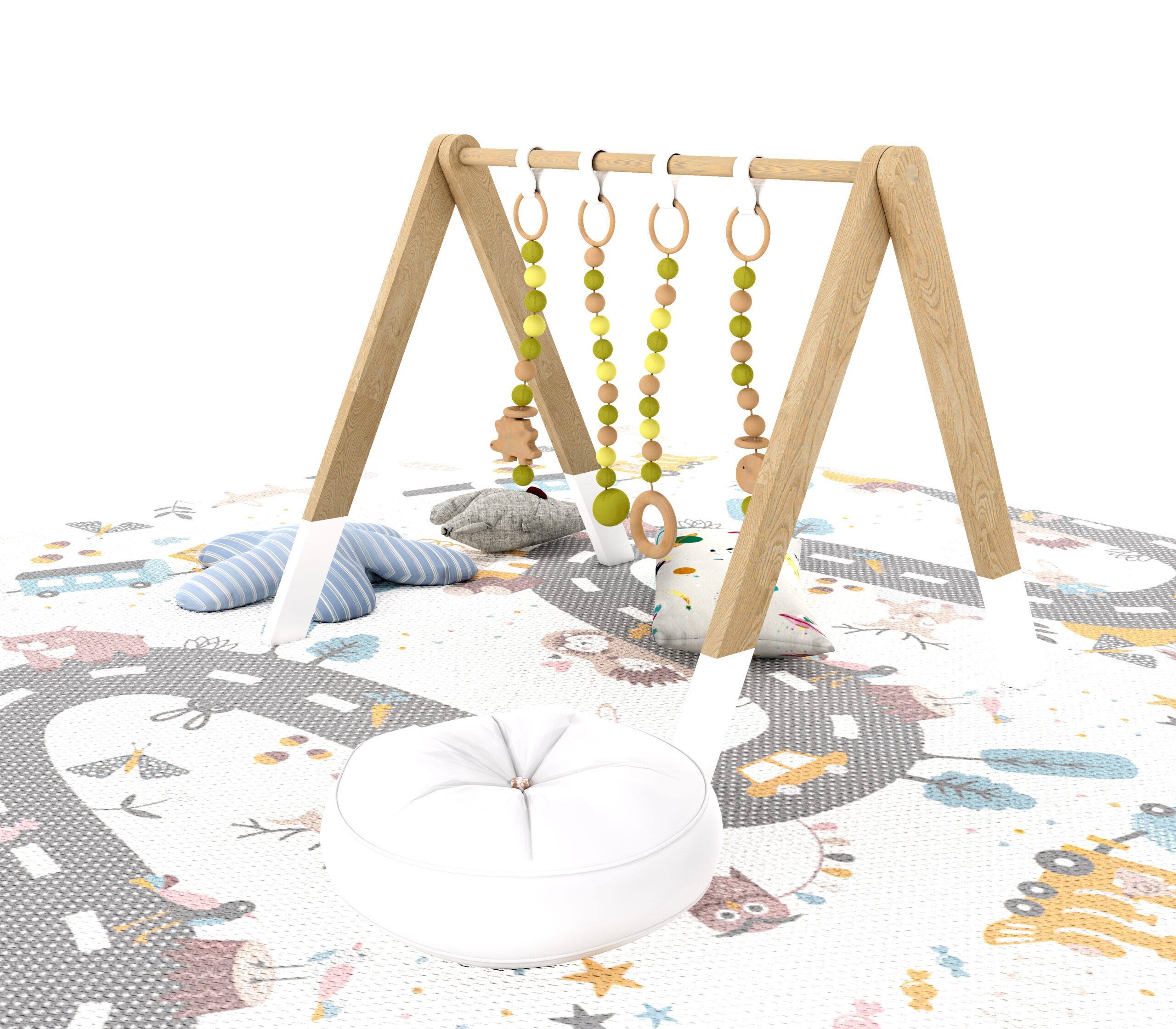 - Sensory Exploration: Often includes hanging toys with different textures, shapes, and sounds for tactile and visual stimulation.